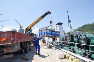 (250608) — SANYA, 8 junio, 2025 (Xinhua) — Rescatistas transfieren al delfín de dientes rugosos Yang Yang a un barco, en Sanya, en la provincia de Hainan, en el sur de China, el 8 de junio de 2025. Yang Yang, un delfín de dientes rugosos, fue satisfactoriamente devuelto al mar de las costas de Sanya el domingo después de un programa de rescate y rehabilitación. El mamífero marino quedó varado inicialmente en la bahía de Yalong el 24 de abril. Mientras Yang Yang recupera la salud tras recibir atención especializada, los expertos han decidido devolverlo a una zona marina considerada adecuada para su vida futura. (Xinhua/Zhang Liyun) (rtg) (da)
