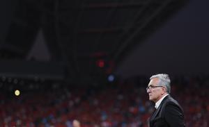 (250325) -- HANGZHOU, 25 marzo, 2025 (Xinhua) -- El director técnico, Branki Ivankovic, de China, reacciona previo al partido correspondiente al Grupo C de eliminatorias asiáticas para la Copa Mundial de la FIFA 2026, entre China y Australia, en Hangzhou, China, el 25 de marzo de 2025. (Xinhua/Huang Zongzhi) (oa) (ah) (vf)