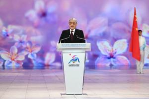 (250207) -- HARBIN, 7 febrero, 2025 (Xinhua) -- Timothy Fok Tsun-ting, vicepresidente del Consejo Olímpico de Asia, habla durante la ceremonia de apertura de los IX Juegos Asiáticos de Invierno, en Harbin, en la provincia de Heilongjiang, en el noreste de China, el 7 de febrero de 2025. (Xinhua/Xie Jianfei) (rtg) (ra) (vf)