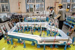 (250924) -- SHIJIAZHUANG, 24 septiembre, 2025 (Xinhua) -- Técnicos verifican la calidad del producto en una empresa de moldes, en Botou, en la provincia de Hebei, en el norte de China, el 24 de septiembre de 2025. En los últimos años, como una de las antiguas bases industriales de Hebei, Botou ha visto cómo sus procesos de fabricación se han transformado en ecológicos y respetuosos con el medio ambiente. (Xinhua/Mu Yu) (ah) (vf)