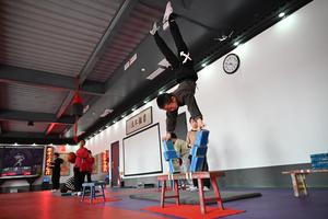 (251103) — CANGZHOU, 3 noviembre, 2025 (Xinhua) — Imagen del 28 de octubre de 2025 de un estudiante practicando acrobacias en un patio acrobático situado a lo largo de una carretera de terraplén del Gran Canal, en el distrito de Wuqiao de Cangzhou, en la provincia de Hebei, en el norte de China. El Gran Canal, que conecta Beijing, en el norte de China, con la ciudad de Hangzhou, en el este del país, tiene más de 2.500 años de historia y es conocido como la vía fluvial artificial más larga del mundo. A lo largo del tramo de Cangzhou se ha construido una carretera con terraplén que se extiende a lo largo de 308 kilómetros y conecta más de 300 aldeas de toda la ciudad. (Xinhua/Mu Yu) (oa) (ah) (ce)