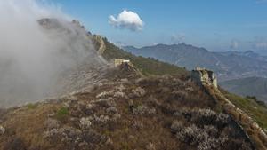 (260410) -- SHIJIAZHUANG, 10 abril, 2026 (Xinhua) -- Vista aérea tomada con un dron el 10 de abril de 2026 de una sección de la antigua Gran Muralla después de la lluvia, en la ciudad de Qian'an de la provincia de Hebei, en el norte de China. (Xinhua/Liu Mancang) (rtg) (ra) (ce)