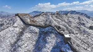 (250316) -- LUANPING, 16 marzo, 2025 (Xinhua) -- Imagen tomada con un dron el 16 de marzo de 2025 del paisaje nevado en la sección de Jinshanling de la Gran Muralla cubierta por nieve, en el distrito de Luanping de Chengde, en la provincia de Hebei, en el norte de China. (Xinhua/Chen Yehua) (rtg) (ah)