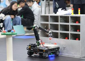 (251017) -- SHIJIAZHUANG, 17 octubre, 2025 (Xinhua) -- Un robot clasificador compite durante un juego en el Centro Internacional de Convenciones y Exposiciones, en Shijiazhuang, en la provincia de Hebei, en el norte de China, el 17 de octubre de 2025. La Competencia de Robots de China 2025 y el RoboCup China Open se celebran aquí desde el viernes hasta el domingo. (Xinhua/Yang Shiyao) (oa) (ra) (vf)