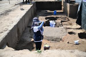 (250910) -- SHIJIAZHUANG, 10 septiembre, 2025 (Xinhua) -- Un arqueólogo toma fotografías durante la sexta excavación del sitio del poblado de Bairen, en la ciudad de Xingtai, en la provincia de Hebei, en el norte de China, el 10 de septiembre de 2025. La sexta excavación del sitio del poblado de Bairen, en la ciudad de Xingtai, comenzó en julio y avanza sin problemas hasta la fecha. (Xinhua/Mu Yu) (ah) (ra) (ce)