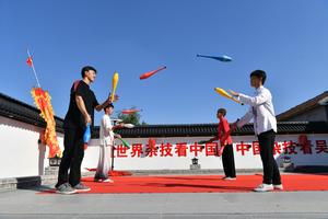 (250926) — SHIJIAZHUANG, 26 septiembre, 2025 (Xinhua) — Imagen del 25 de septiembre de 2025 de estudiantes practicando habilidades acrobáticas en el patio acrobático de Zhang Shuo, en el poblado de Sangyuan, en el distrito de Wuqiao, en la provincia de Hebei, en el norte de China. Wuqiao, conocida como la cuna del arte acrobático chino, cuenta con 14 «patios acrobáticos» diferentes que sirven como un conjunto de bases para la formación de artistas, el diseño de nuevas obras y la investigación del arte popular. (Xinhua/Mu Yu) (oa) (ra) (ce)