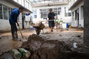(250802) -- XINGLONG, 2 agosto, 2025 (Xinhua) -- Imagen del 1 de agosto de 2025 de aldeanos limpiando lodo, en la aldea de Liudaogou, en el poblado de Liudaohe, en el distrito de Xinglong de la provincia de Hebei, en el norte de China. Afectadas por las fuertes lluvias, algunas carreteras y viviendas resultaron dañadas en varias aldeas del poblado de Liudaohe. En los últimos días, las autoridades locales han organizado esfuerzos activamente para llevar a cabo operaciones de socorro para restaurar las carreteras, el suministro eléctrico y las instalaciones de comunicación, junto con medidas de desinfección ambiental. (Xinhua/Wang Liqun) (oa) (da)