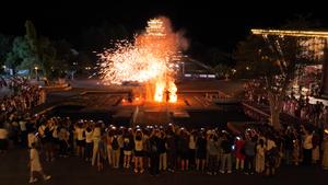 (250829) -- HEFEI, 29 agosto, 2025 (Xinhua) -- Vista aérea tomada con un dron el 27 de agosto de 2025 de un espectáculo de fuegos artificiales de hierro fundido y la presentación del Huohu (olla de fuego), en el distrito de Xiuning de la ciudad de Huangshan, en la provincia de Anhui, en el este de China. El mercado del turismo cultural de verano está en auge en la provincia de Anhui, donde el patrimonio cultural inmaterial se ha convertido en un importante atractivo para los visitantes. (Xinhua/Zhou Mu) (rtg) (ra) (ce)