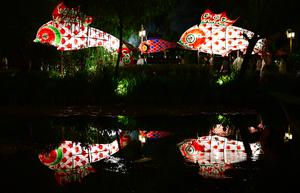 (250829) -- HEFEI, 29 agosto, 2025 (Xinhua) -- Imagen del 27 de agosto de 2025 de turistas observando un desfile de las linternas en forma de pez, en el distrito de Xiuning de la ciudad de Huangshan, en la provincia de Anhui, en el este de China. El mercado del turismo cultural de verano está en auge en la provincia de Anhui, donde el patrimonio cultural inmaterial se ha convertido en un importante atractivo para los visitantes. (Xinhua/Zhou Mu) (rtg) (ra) (ce)