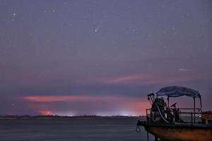 (251023) — HARBIN, 23 octubre, 2025 (Xinhua) — Imagen del 20 de octubre de 2025 del cometa C/2025 A6 (Lemmon) y una lluvia de meteoritos en el cielo sobre la ciudad de Tongjiang, en la provincia de Heilongjiang, en el noreste de China. (Xinhua/Liu Wanping) (jg) (ah) (ce)