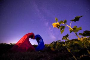 (250829) — HARBIN, 29 agosto, 2025 (Xinhua) — Imagen del 26 de agosto de 2025 de una instalación artística vista bajo la Vía Láctea, en la ciudad de Qiqihar, en la provincia de Heilongjiang, en el noreste de China. Conocido como la versión china del Día de San Valentín, el Festival Qixi cayó el viernes este año. (Xinhua/Wang Yonggang) (rtg) (ra) (vf)