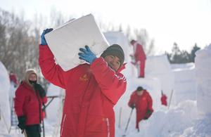 (260106) -- HARBIN, 6 enero, 2026 (Xinhua) -- Un concursante transporta un bloque de nieve en el recinto de la Exposición Internacional de Arte de Esculturas de Nieve de la Isla del Sol, en Harbin, en la provincia de Heilongjiang, en el noreste de China, el 6 de enero de 2026. El 28 concurso internacional de esculturas de nieve de Harbin comenzó aquí el martes, atrayendo 25 equipos de escultores de nieve de 13 países. (Xinhua/Wang Jianwei) (jg) (ra) (vf)