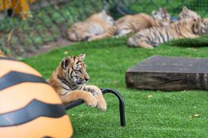 (250729) -- HARBIN, 29 julio, 2025 (Xinhua) -- Un cachorro de tigre es visto en el Parque del Tigre Siberiano, en Harbin, en la provincia de Heilongjiang, en el noreste de China, el 29 de julio de 2025. Una serie de eventos, que conmemoran el Día Internacional del Tigre, se llevaron a cabo aquí el martes. (Xinhua/Xie Jianfei) (jg) (ra) (vf)