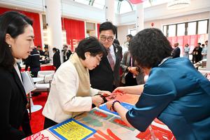(250207) -- HARBIN, 7 febrero, 2025 (Xinhua) -- El presidente de la Asamblea Nacional de la República de Corea, Woo Won-shik y su esposa, experimentan objetos de patrimonio cultural inmaterial previo a un banquete de bienvenida, en Harbin, en la provincia de Heilongjiang, en el noreste de China, el 7 de febrero de 2025. El presidente chino, Xi Jinping, y su esposa, Peng Liyuan, ofrecieron el viernes un banquete de bienvenida en la ciudad de Harbin, en el noreste de China, para los dignatarios internacionales que se encuentran aquí para asistir a la ceremonia de apertura de los IX Juegos Asiáticos de Invierno. Antes del banquete, los invitados recorrieron una exhibición que muestra el patrimonio cultural inmaterial de Heilongjiang. (Xinhua/Yan Yan) (rtg) (ra) (vf)