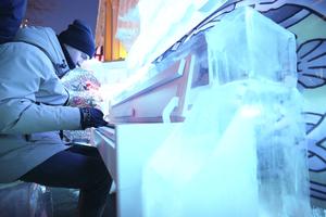 (260115) -- HARBIN, 15 enero, 2026 (Xinhua) -- Un visitante toca un piano único incrustado en una escultura de hielo, en Harbin, en la provincia de Heilongjiang, en el noreste de China, el 15 de enero de 2026. La centenaria Calle Central de Harbin se ha transformado en un brillante país de las maravillas invernal con la incorporación de docenas de esculturas de hielo, atrayendo una gran afluencia de residentes y turistas. (Xinhua/Wang Song) (da) (ra) (vf)