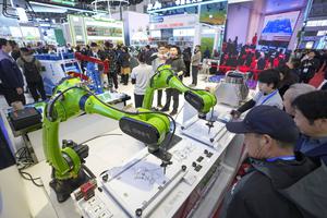 (250517) — HARBIN, 17 mayo, 2025 (Xinhua) — Visitantes observan brazos robóticos inteligentes en la 34 Feria Internacional de Economía y Comercio de Harbin, en Harbin, capital de la provincia de Heilongjiang, en el noreste de China, el 17 de mayo de 2025. La feria se inauguró aquí el sábado, atrayendo a expositores de más de 110 países y regiones. (Xinhua/Wang Jianwei) (oa) (da)