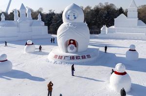 CHINA-HEILONGJIANG-HARBIN-ISLA DEL SOL-EXPOSICION DE ARTE DE ESCULTURAS DE NIEVE-APERTURA DE PRUEBA