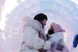 (250226) -- HARBIN, 26 febrero, 2025 (Xinhua) -- Imagen del 25 de febrero de 2025 de turistas posando para fotografías en el Mundo de Hielo y Nieve de Harbin, en Harbin, en la provincia de Heilongjiang, en el noreste de China. El 26 Mundo de Hielo y Nieve de Harbin cerró oficialmente el miércoles mientras las temperaturas aumentan. (Xinhua/Wang Song) (jg) (da) (ce)