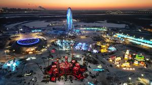 (251205) -- HARBIN, 5 diciembre, 2025 (Xinhua) --Vista aérea tomada con un dron el 4 de diciembre de 2025 del sitio de construcción del Mundo de Hielo y Nieve, en Harbin, en la provincia de Heilongjiang, en el noreste de China. La edición 27 del Mundo de Hielo y Nieve en Harbin ha comenzado recientemente su trabajo de construcción, que involucran a más de 10.000 trabajadores y aproximadamente 1.000 máquinas. Se espera que el área del parque se extienda hasta los 1,2 millones de metros cuadrados, la más grande de todas las ediciones en la historia. (Xinhua/Liu Yang) (rtg) (ra)