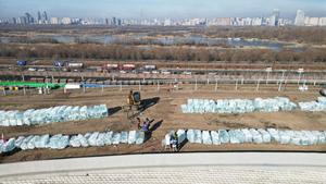 (251125) -- HARBIN, 25 noviembre, 2025 (Xinhua) -- Vista aérea tomada con un dron el 25 de noviembre de 2025 del sitio de construcción del Mundo de Hielo y Nieve de Harbin, en Harbin, en la provincia de Heilongjiang, en el noreste de China. La 27ª edición del Mundo de Hielo y Nieve de Harbin, un reconocido parque temático estacional en Harbin, comenzó oficialmente su construcción el martes. (Xinhua/Liu Yang) (jg) (ra) (vf)