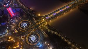 (250626) -- HARBIN, 26 junio, 2025 (Xinhua) -- Vista aérea tomada con un dron el 26 de enero de 2025 de un paisaje nocturno de un puente sobre el río Songhua, en Harbin, en la provincia de Heilongjiang, en el noreste de China. La ciudad, con más de 9 millones de habitantes, ahora cuenta con 16 estilos arquitectónicos diferentes: bizantino, neoclásico, art déco, barroco, y su número de edificios históricos supera los 1.000. (Xinhua/Wang Song) (jg) (da) (vf)