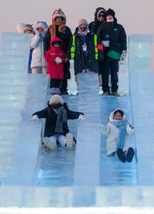 (260106) — HARBIN, 6 enero, 2026 (Xinhua) — Imagen del el 5 de enero de 2026 de personas disfrutando de un tobogán de hielo en el Mundo de Hielo y Nieve de Harbin, en Harbin, en la provincia de Heilongjiang, en el noreste de China. La «Ciudad de Hielo» de Harbin está experimentando una creciente afluencia de visitantes atraídos por los paisajes de hielo y nieve. El lunes se inauguró el 42 Festival de Hielo y Nieve en el Mundo de Hielo y Nieve de Harbin, el parque temático de hielo y nieve más grande del mundo y la atracción turística más emblemática de la ciudad. Durante las recientes vacaciones de Año Nuevo de tres días, Harbin recibió a más de 4,1 millones de viajeros. (Xinhua/Wang Jianwei) (oa) (ah)
