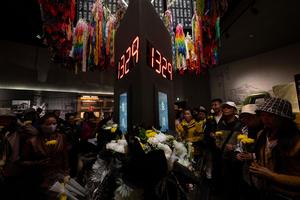 (250918) -- HARBIN, 18 septiembre, 2025 (Xinhua) -- Visitantes colocan flores para las víctimas de crímenes cometidos por la Unidad 731 en la Sala de Exhibición de Evidencias de Crímenes Cometidos por la Unidad 731 del Ejército Imperial Japonés, en Harbin, capital de la provincia de Heilongjiang, en el noreste de China, el 18 de septiembre de 2025. La Unidad 731, una base secreta de investigación de guerra biológica y química, fue establecida en el distrito de Pingfang de Harbin, capital de la provincia de Heilongjiang, en el noreste de China, y sirvió como centro neurálgico de la guerra biológica japonesa en China y el Sudeste asiático durante la Segunda Guerra Mundial. (Xinhua/Zhang Tao) (rtg) (ra)