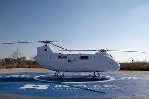 (251030) -- HARBIN, 30 octubre, 2025 (Xinhua) -- Imagen del 30 de octubre de 2025 del helicóptero no tripulado Boying T1400 con rotores en tándem de United Aircraft, en Harbin, en la provincia de Heilongjiang, en el noreste de China. El helicóptero, con un peso máximo de despegue de 1.400 kg, una autonomía de hasta ocho horas, un techo de servicio de 6.500 metros y una velocidad máxima de vuelo horizontal de 180 km por hora, completó con éxito su vuelo inaugural el jueves. (Xinhua/Zhang Tao) (jg) (ah) (ce)