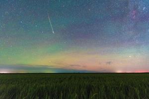 (250801) — HARBIN, 1 agosto, 2025 (Xinhua) — Imagen de larga exposición del 30 de julio de 2025 de una lluvia de meteoritos sobre la ciudad de Fujin, en la provincia de Heilongjiang, en el noreste de China. Varias lluvias de meteoritos iluminaron recientemente el cielo nocturno en la provincia de Heilongjiang, en el noreste de China. (Xinhua/Qu Yubao) (rtg) (ra) (ce)