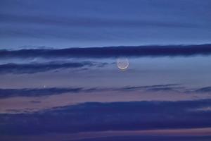 (260320) -- HARBIN, 20 marzo, 2026 (Xinhua) -- Imagen del 20 de marzo de 2026 del planeta Venus junto a la luna en el cielo crepuscular sobre la ciudad de Tongjiang, en la provincia de Heilongjiang, en el noreste de China. (Xinhua/Liu Wanping) (jg) (da) (vf)
