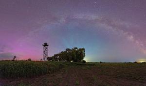 (250602) -- HARBIN, 2 junio, 2025 (Xinhua) -- Imagen compuesta del 1 de junio de 2025 de la aurora y la Vía Láctea, en la ciudad de Fujin, en la ciudad de Jiamusi, en la provincia de Heilongjiang, en el noreste de China. (Xinhua/Qu Yubao) (oa) (rtg) (vf)