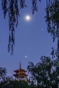(250821) -- HARBIN, 21 agosto, 2025 (Xinhua) -- Imagen del 20 de agosto de 2025 de los planetas Venus y Júpiter junto a la luna creciente en el cielo sobre la ciudad de Qiqihar, en la provincia de Heilongjiang, noreste de China. (Xinhua/Wang Yonggang) (da) (ra) (vf)
