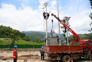 (250702) -- ZHENGZHOU, 2 julio, 2025 (Xinhua) -- Trabajadores reparan cables eléctricos, en el poblado de Taiping del distrito de Xixia, en la ciudad de Nanyang, en la provincia de Henan, en el centro de China, el 2 de julio de 2025. Los intensos aguaceros en Taiping y Erlangping provocaron el lunes un aumento repentino en el nivel del agua de la corriente descendente de un río local en el distrito de Xixia, causando daños a la infraestructura y dejando atrapados a algunos residentes. (Xinhua/Hao Yuan) (ra) (vf)