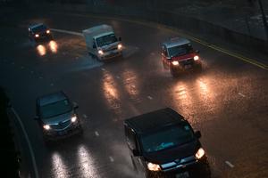 (250805) — HONG KONG, 5 agosto, 2025 (Xinhua) — Automóviles circulan bajo la lluvia en una calle, en Hong Kong, en el sur de China, el 5 de agosto de 2025. El Observatorio de Hong Kong emitió el martes por la mañana la señal de alerta de tormenta negra, la cuarta vez en ocho días. Este es el nivel más alto del sistema de alerta por lluvias intensas de tres niveles del observatorio. (Xinhua/Zhu Wei) (oa) (ah) (ce)