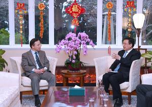 (250221) -- HONG KONG, 21 febrero, 2025 (Xinhua) -- El presidente de la Agencia de Noticias Xinhua, Fu Hua, se reúne con el presidente de la Universidad de Hong Kong, Zhang Xiang, en Hong Kong, en el sur de China, el 19 de febrero de 2025. Fu Hua se reunió con miembros de varios sectores de Hong Kong, incluyendo educación, cultura e industria editorial, durante su visita a la Región Administrativa Especial de Hong Kong y alcanzó consensos con cada uno de ellos para seguir profundizando la cooperación. (Xinhua/Chen Duo) (jg) (da) (ce)