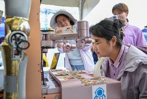 (250602) — WUHAN, 2 junio, 2025 (Xinhua) — Una visitante prueba un robot maquillador durante el carnaval mundial de robots, en Wuhan, en la provincia de Hubei, en el centro de China, el 2 de junio de 2025. El evento comenzó aquí el lunes, presentando cerca de 100 robots incluyendo robots mascota, robots maquilladores, banda de robótica, etc. Personas interactuaron con los robots para experimentar el encanto de la vida potenciada por la tecnología. (Xinhua/Du Zixuan) (oa) (rtg) (vf)