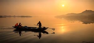 (251216) -- WUHAN, 16 diciembre, 2025 (Xinhua) -- Imagen del 16 de noviembre de 2025 de un empleado limpiando objetos flotantes en el área escénica del Lago Donghu, en Wuhan, en la provincia de Hubei, en el centro de China. (Xinhua/Shen Hongbing) (oa) (ah) (vf)