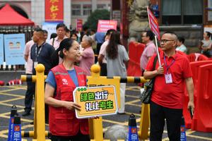 (250608) — CHANGSHA, 8 junio, 2025 (Xinhua) — Una voluntaria mantiene el orden frente a un sitio del examen nacional de ingreso a la universidad, en Changsha, en la provincia de Hunan, en el centro de China, el 8 de junio de 2025. El distrito de Tianxin de Changsha ha organizado a voluntarios para brindar ayuda para estudiantes y sus padres en múltiples sitios locales del examen, durante el examen nacional de ingreso a la universidad de este año. (Xinhua/Chen Zhenhai) (rtg) (da)