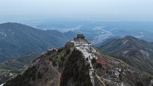 (260110) -- HENGYANG, 10 enero, 2026 (Xinhua) -- Vista aérea tomada con un dron el 10 de enero de 2026 de turistas visitando el punto escénico de la montaña Hengshan, en la ciudad de Hengyang, en la provincia de Hunan, en el centro de China. (Xinhua/Chen Zhenhai) (oa) (ra) (ce)