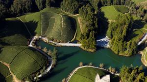 (251120) — BEIJING, 20 noviembre, 2025 (Xinhua) — Vista aérea tomada con un dron el 20 de noviembre de 2025 de un jardín de té, en el poblado de Zouma del distrito de Hefeng, en la prefectura autónoma tujia y miao de Enshi, en la provincia de Hubei, en el centro de China. (Xinhua/Yang Shunpi) (rtg) (ra) (ce)