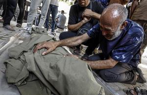 (250807) -- GAZA, 7 agosto, 2025 (Xinhua) -- Imagen del 6 de agosto de 2025 de palestinos lamentándose por una víctima en el Hospital Al-Shifa, en el centro de la Ciudad de Gaza. Al menos 27 palestinos murieron en ataques israelíes el miércoles, mientras que otros 20 fallecieron al volcar un camión de alimentos en la Franja de Gaza, de acuerdo con fuentes palestinas. (Xinhua/Mahmoud Zaki) (jg) (ah) (ce)