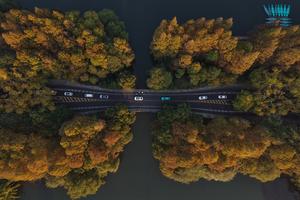 (251121) -- BEIJING, 21 noviembre, 2025 (Xinhua) -- Vista aérea tomada con un dron el 21 de noviembre de 2025 del área escénica del Lago Oeste, en Hangzhou, en la provincia de Zhejiang, en el este de China. (Xinhua/Huang Zongzhi) (oa) (ra) (ce)