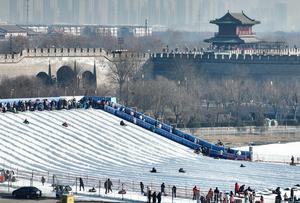 (251228) — BEIJING, 28 diciembre, 2025 (Xinhua) — Vista aérea tomada con un dron el 28 de diciembre de 2025 de personas divirtiéndose en un parque temático de hielo y nieve, en el distrito de Zhengding de la provincia de Hebei, en el norte de China (Xinhua/Zhang Xiaofeng) (oa) (ah)