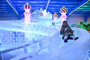 (250715) -- HUAIAN, 15 julio, 2025 (Xinhua) -- Una niña se divierte en un mundo de nieve y hielo en interior, en Huaian, en la provincia de Jiangsu, en el este de China, el 15 de julio de 2025. Un mundo de nieve y hielo en interior, instalado en el punto escénico del bosque acuático de Jinhu en Huaian, ofrece a los turistas una experiencia refrescante en verano. (Xinhua/Ji Chunpeng) (jg) (ra) (vf)