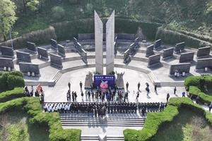 (250404) -- NANJING, 4 abril, 2025 (Xinhua) -- Vista aérea tomada con un dron el 3 de abril de 2025 de una ceremonia en honor a los héroes de la aviación antijaponesa en el Cementerio Conmemorativo a los Mártires de la Aviación Antijaponesa de Nanjing, en Nanjing, en la provincia de Jiangsu, en el este de China. China publicó el jueves su segunda lista actualizada de los mártires de la aviación chinos que sacrificaron sus vidas durante la Guerra de Resistencia del Pueblo Chino contra la Agresión Japonesa, ampliándola a 1.470 nombres, de acuerdo con el Salón Conmemorativo de los Mártires de la Aviación Antijaponesa de Nanjing, en la provincia de Jiangsu, en el este de China. (Xinhua/Mao Jun) (jg) (da) (vf)