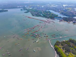 (250406) -- JIANGYAN, 6 abril, 2025 (Xinhua) -- Vista aérea tomada con un dron el 6 de abril de 2025 de una escena durante el Festival de Botes de Qintong 2025 llevado a cabo en el Parque Nacional de Humedales de Qinhu, en el distrito de Jiangyan de Taizhou, en la provincia de Jiangsu, en el este de China. Más de 500 botes con más de 10.000 tripulantes a bordo, se reunieron aquí el domingo para el Festival de Botes de Qintong que ha sido una tradición de siglos de antigüedad. El Festival de Botes de Qintong fue enlistado como patrimonio cultural inmaterial a nivel estatal en 2008. (Xinhua/Ji Chunpeng) (rtg) (ah)