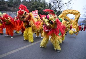 (250211) -- XUYI, 11 febrero, 2025 (Xinhua) -- Artistas realizan una presentación de la danza del dragón y el león durante un evento, en el distrito de Xuyi, en la provincia de Jiangsu, en el este de China, el 11 de febrero de 2025. El distrito de Xuyi celebró el martes un vibrante evento folclórico para celebrar el próximo Festival de las Linternas. Trece equipos desfilaron por las calles de la ciudad, mostrando una deslumbrante variedad de presentaciones culturales tradicionales. (Xinhua/Ji Chunpeng) (oa) (ah) (vf)