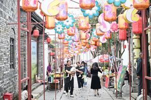 (251001) -- XUYI, 1 octubre, 2025 (Xinhua) -- Turistas se divierten en un bloque histórico y cultural del distrito de Xuyi, en la provincia de Jiangsu, en el este de China, el 1 de octubre de 2025. El distrito de Xuyi de la provincia de Jiangsu ha presentado una serie de medidas para impulsar el turismo durante las vacaciones del Día Nacional, como la entrada gratuita a un punto escénico local y la distribución de cupones de consumo, en un esfuerzo por liberar la vitalidad de la economía impulsada por el turismo durante las vacaciones. (Xinhua/Ji Chunpeng) (jg) (ra) (vf)