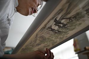(250611) -- YANCHENG, 11 junio, 2025 (Xinhua) -- Imagen del 6 de junio de 2025 de Chen Boyu trabajando en una obra de arte de bordado de cabello en la fábrica de bordado de cabello de Jiali, en la ciudad de Dongtai, en Yancheng de la provincia de Jiangsu, en el este de China. El Bordado de Cabello de Dongtai, que se originó de la costumbre popular de utilizar cabellos humanos como hilo para bordar a Buda en la dinastía Tang (618-907) de China, tiene una historia de más de 1.300 años. (Xinhua/Xin Yuewei) (ra) (vf)
