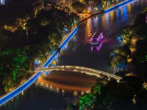 (250718) — YANGZHOU, 18 julio, 2025 (Xinhua) — Vista aérea tomada con un dron el 17 de julio de 2025 de un crucero navegando por el antiguo canal, en Yangzhou, en la provincia de Jiangsu, en el este de China. En los últimos años, Yangzhou ha puesto en marcha un proyecto de mejora del paisaje nocturno del antiguo canal, y ha organizado visitas nocturnas y mercados nocturnos para mejorar la experiencia de consumo de los turistas. (Xinhua/Meng Delong) (oa) (ra) (vf)